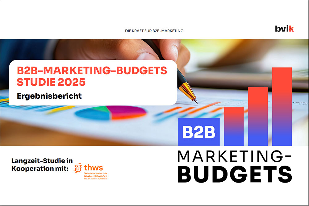 Die Langzeitstudie „B2B-Marketing-Budgets 2025“ des Bundesverbands Industrie Kommunikation e.V. (bvik) liefert zum 13. Mal fundierte Benchmarks und strategische Orientierung für Marketingverantwortliche in B2B-Unternehmen. Sie basiert auf einer Online-Befragung von 93 Marketingverantwortlichen aus Unternehmen mit mehr als 50 Mitarbeitenden. Die wissenschaftliche Begleitung erfolgte durch Prof. Dr. Hannes Huttelmaier, Technische Hochschule Würzburg-Schweinfurt (THWS).