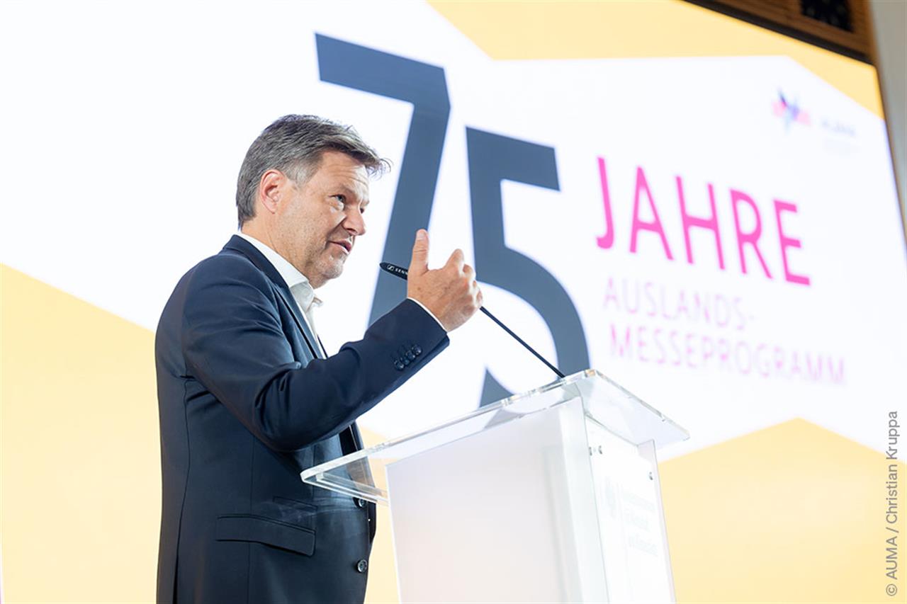 Bei einem Festakt in Berlin zum Start des Auslandsmesseprogramms vor 75 Jahren betonte Bundeswirtschaftsminister Robert Habeck die Bedeutung des ältesten Förderprogramms des Wirtschaftsministeriums und der Bundesregierung. Es habe seit der Gründung über 200.000 deutschen Unternehmen den Einstieg in Auslandsmärkte ermöglicht und bilde das Fundament für die Exportnation Deutschland, für Wohlstand und Sicherheit über eine sehr lange Zeit. Der AUMA koordiniert das Programm seit Jahrzehnten für die ausstellende deutsche Wirtschaft.