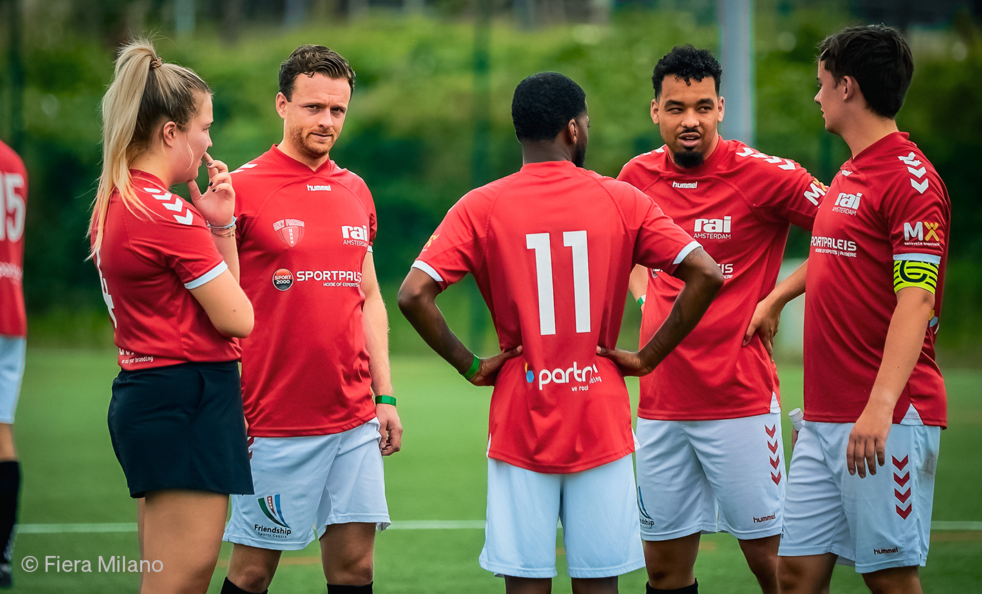 Am Turnier-Samstag wurde in zwei Gruppen gestartet, bei hochsommerlichen Temperaturen von 28 Grad. Hart aber fair – im besten Messe-Sinn gingen nach den Gruppenspielen die Teams aus Berlin, Hannover, Köln und Mailand in die Halbfinals, kräftig angefeuert und laut bejubelt. Die Elfmeterentscheidungen um Platz 3 und im Finalspiel waren voller Emotionen und für alle Teilnehmenden spannend und interessant. Mailand bezwang im Finale die Vorjahressieger aus Köln. Platz 3 sicherte sich Hannover im Elfmeterschießen gegen das Team aus Berlin.