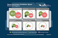 - Mega-Messegelände mit über 100.000 Quadratmetern Innenfläche gibt es inzwischen 81 weltweit: Europa und Asien-Pazifik führen mit jeweils 38, Nordamerika verfügt über 4, der Nahe Osten und Afrika über 1.