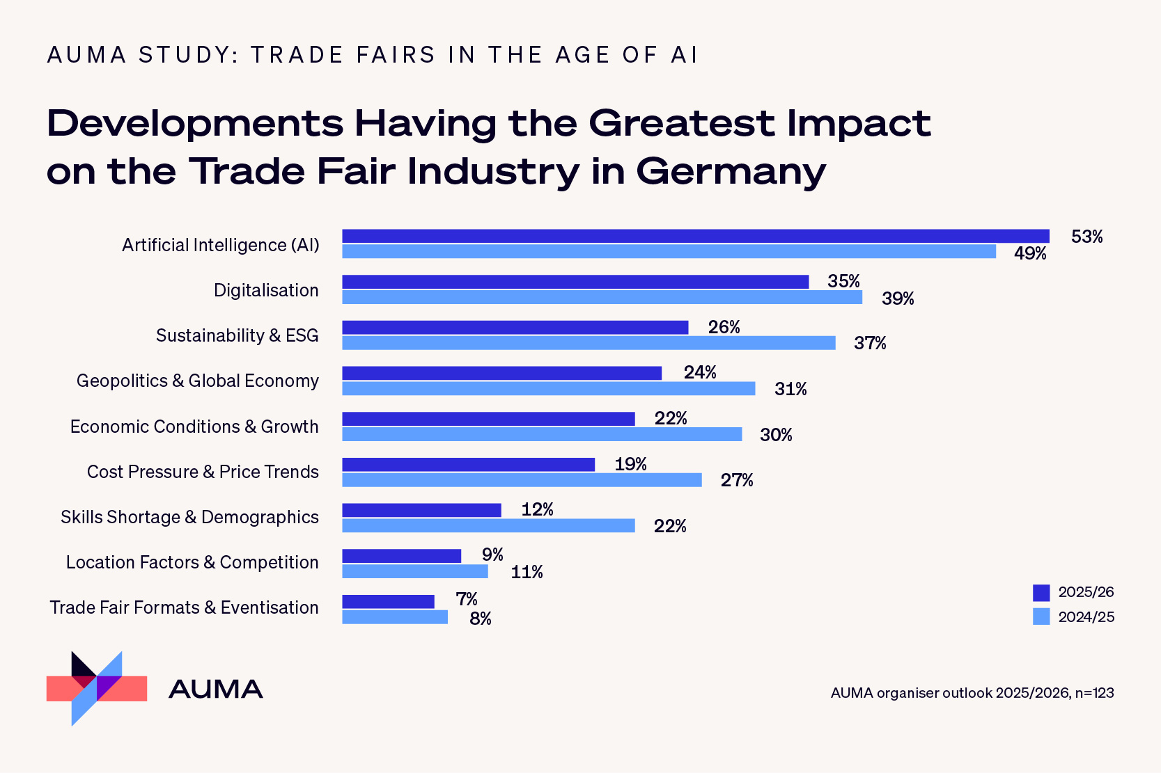 As an important economic driver, trade fairs make a significant contribution to Germany's competitiveness as a business location. AUMA's aim is to support the trade fair industry in responsibly utilising the potential of AI and positioning itself for the future in the long term.