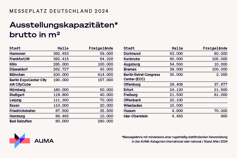 *Messegelände mit mindestens einer regelmäßig stattfindenden Veranstaltung in den AUMA-Kategorien international oder national/Stand: April 2025